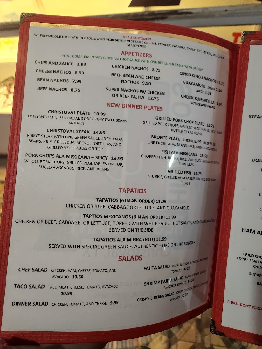 Hidalgo's Restaurant Menu